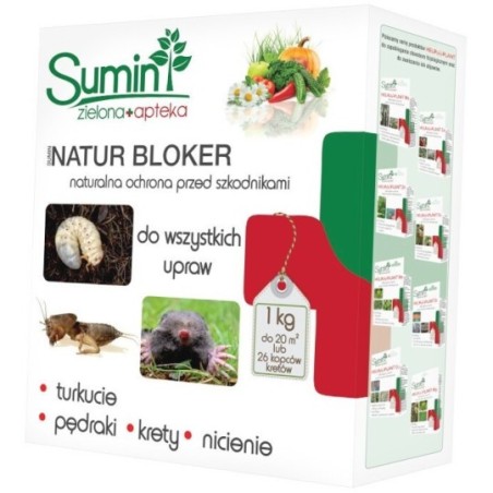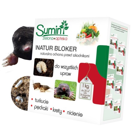 Natur Bloker to naturalny produkt w formie pelletu, stworzony z materii roślinnej, który działa bezpośrednio na glebę, tworząc niekorzystne warunki dla rozwoju chorobotwórczych grzybów oraz bytowania szkodników takich jak turkuć podjadek, krety, nornice, pędraki i nicienie. Zawarte w nim pierwiastki są stopniowo uwalniane, stanowiąc doskonałe źródło nawożenia roślin oraz przywracając równowagę flory mikrobiologicznej, sprzyjając rozwojowi pożytecznych organizmów.
