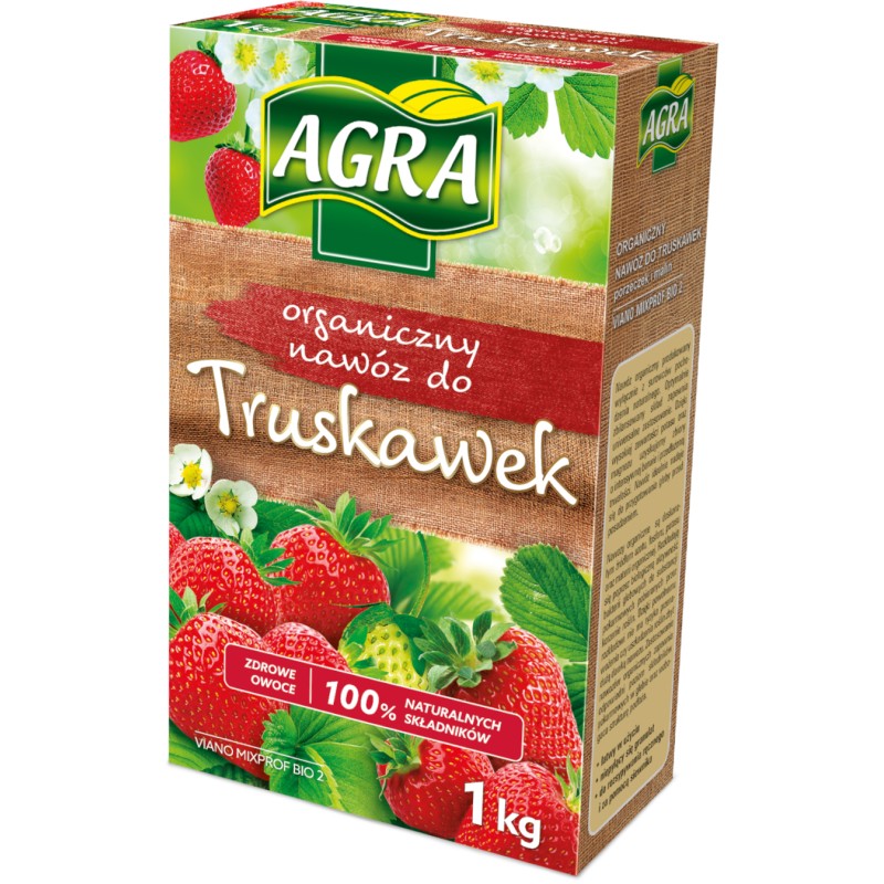 Organiczny nawóz do truskawek to wysokiej jakości granulowany nawóz przeznaczony do nawożenia truskawek, poziomek, porzeczek i malin. Systematyczne stosowanie tego nawozu zapewnia zdrowe oraz smaczne owoce. Dzięki składnikom takim jak: azot, fosfor, potas oraz magnez, w owocach jest syntezowane wiele składników odżywczych oraz witamin. Prawidłowo odżywione rośliny są bardziej odporne na choroby, a także lepiej znoszą trudne warunki: suszę oraz niskie temperatury. Nawóz do truskawek poprawia właściwości fizyczne, a także biologiczne gleby, dzięki wprowadzonej materii organicznej.