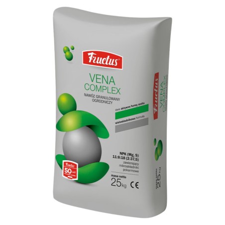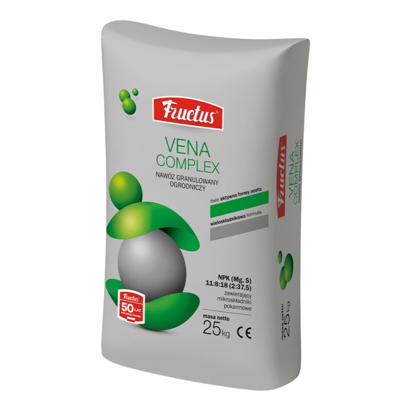 Fructus Vena Complex to skoncentrowany, wieloskładnikowy nawóz granulowany o niskiej zawartości chlorków, przeznaczony do nawożenia warzyw w uprawie polowej i pod osłonami oraz drzew i krzewów owocowych. Dzięki zastosowaniu innowacyjnej formuły nawóz charakteryzuje się wysokim stopniem wykorzystania azotu, co pozwala na sukcesywne dostarczanie tego pierwiastka roślinom. Fructus Vena Complex można stosować zarówno przed siewem lub sadzeniem roślin, jak i pogłównie.