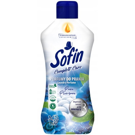 PERFUMOWANY Płyn do płukania tkanin SOFIN Complete Care 300ml PURE PLEASURE - to skoncentrowany zapachowy dodatek do prania i suszenia, który nadaje tkaninom długotrwałą świeżość i zmysłowy aromat. Dzięki innowacyjnej technologii kapsułek zapachowych, zapach uwalnia się stopniowo, zapewniając przyjemne doznania przez wiele tygodni.
