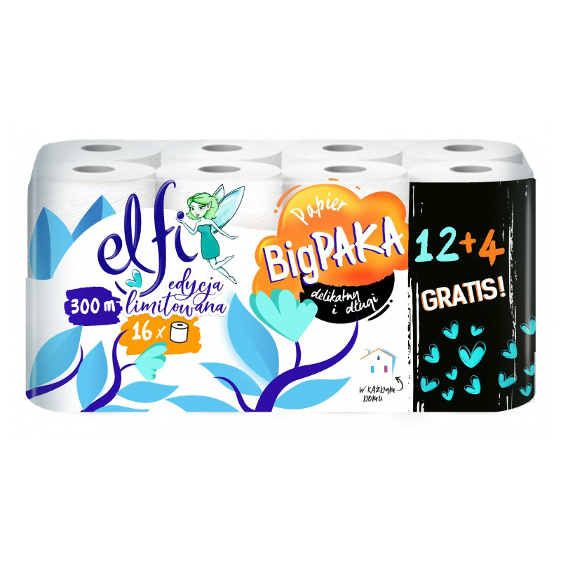 Nowy papier Elfi to naturalnie biały, bezzapachowy papier toaletowy. Dzięki dwóm wytrzymałym warstwom jest wydajny i przyjazny dla Twojego środowiska. Posiada atest PZH i dobrze rozpuszcza się w wodzie.
