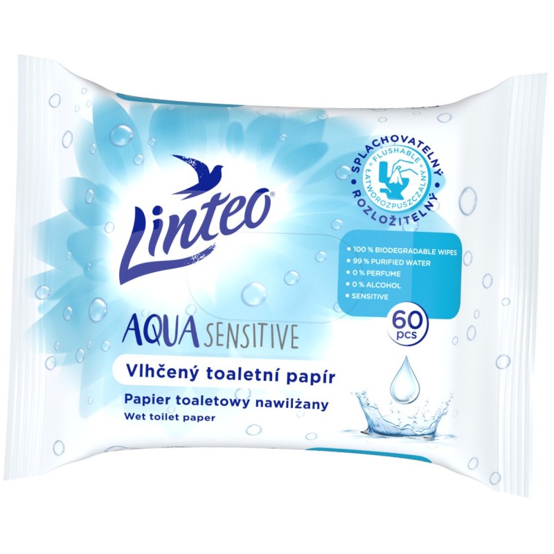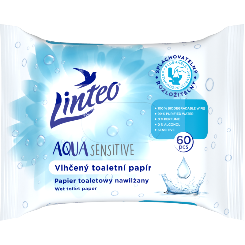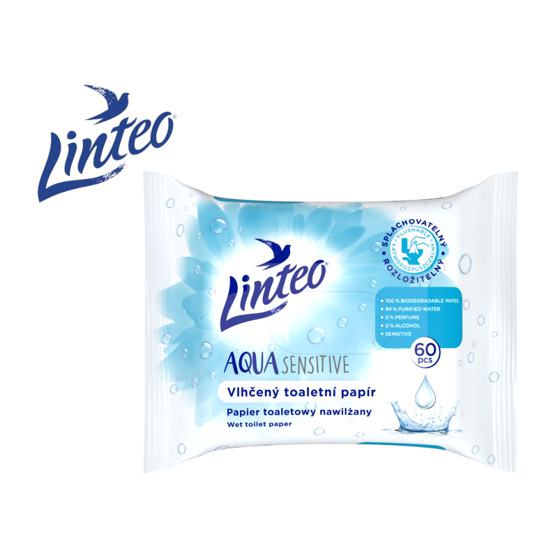 Nawilżany papier toaletowy Linteo Aqua Sensitive (60 szt.) jest idealny do codziennej higieny, zapewniając natychmiastowe uczucie czystości i świeżości. Zawiera 99% wody oraz minimalną ilość substancji dodatkowych, dzięki czemu jest delikatny dla wrażliwej skóry. Produkt nie zawiera alkoholu ani substancji zapachowych. Papier jest biodegradowalny, wytrzymały, i można go spłukiwać w toalecie, co czyni go wygodnym zarówno w domu, jak i podczas podróży.