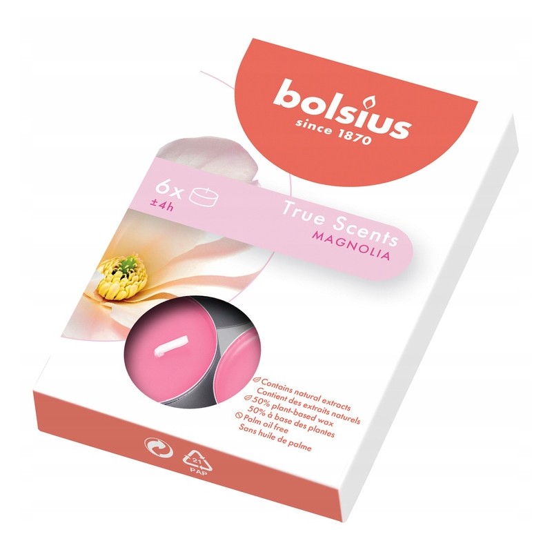Tealighty Podgrzewacze z serii True Scents o zapachu magnolii, i czasie palenia do 4 godzin BOLSIUS.