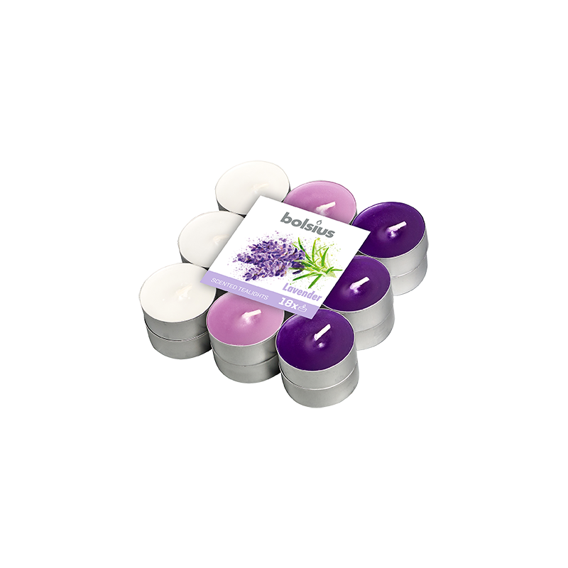 Tealighty Podgrzewacze o zapachu lawendy, różnobarwnym wosku i czasie palenia do 4 godzin BOLSIUS.
