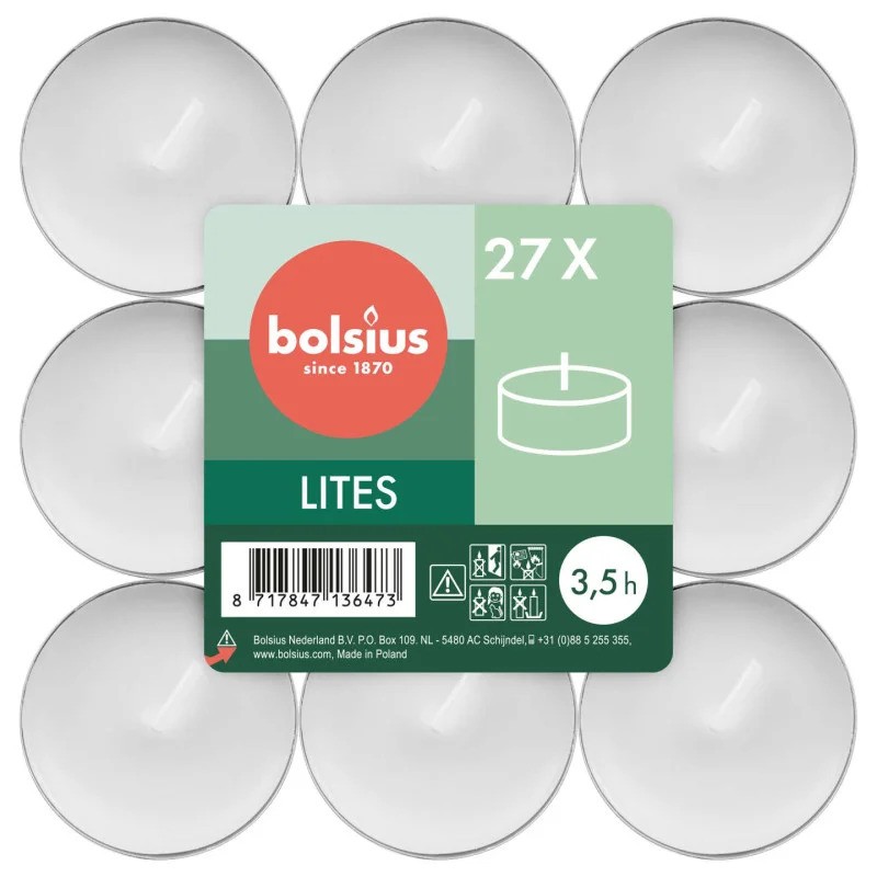 Tealighty Podgrzewacze bezzapachowe o czasie palenia do 3,5 godziny BOLSIUS. Pakowane po 27 szt jednostkowych w opakowaniu zbiorczym.