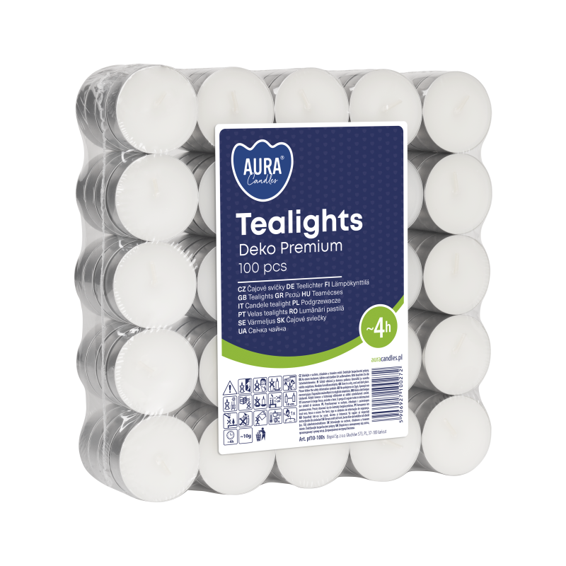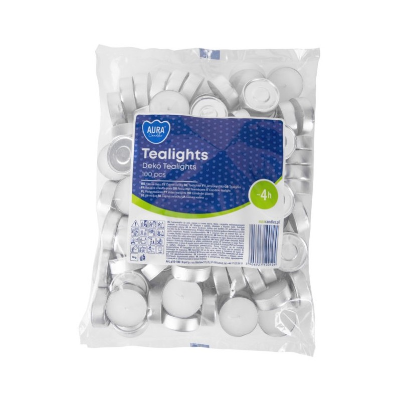 Tealighty Podgrzewacze bezzapachowe o czasie palenia do 4 godzin BISPOL. Pakowane po 100 szt jednostkowych w opakowaniu zbiorczym.