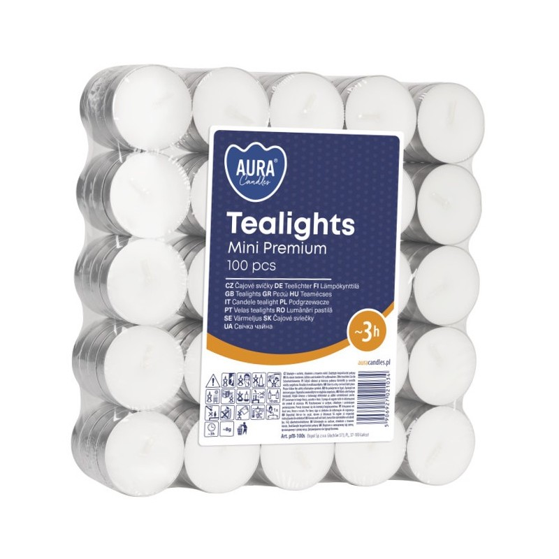 Podgrzewacze bezzapachowe tealight BISPOL Aura 3H MINI 100szt.