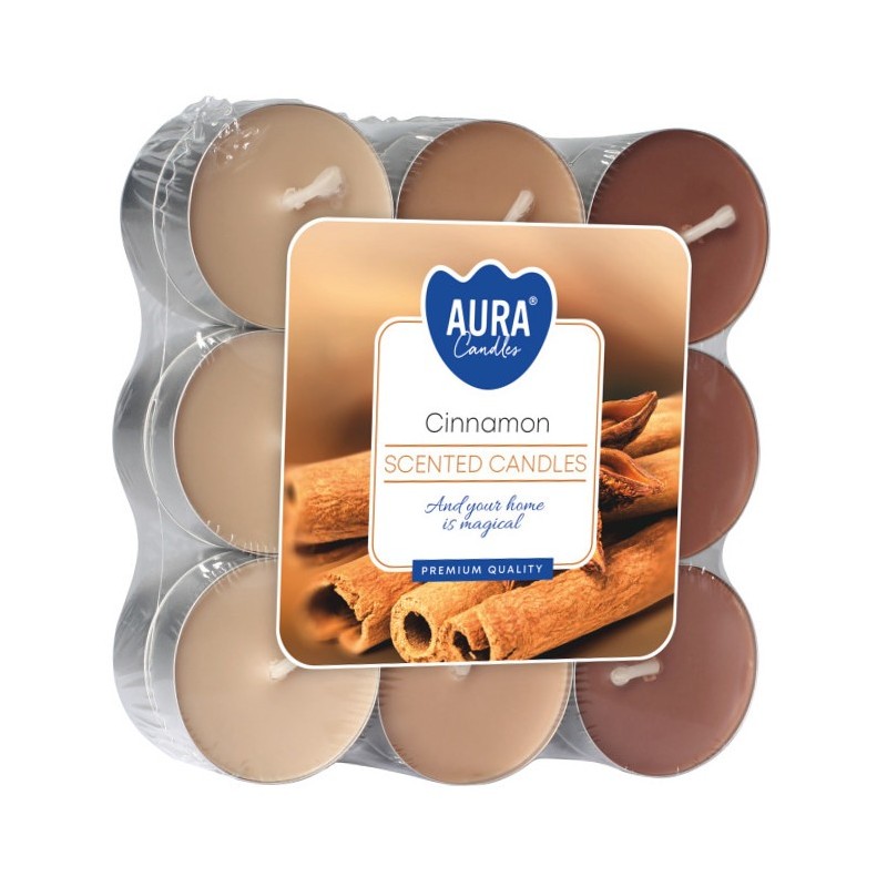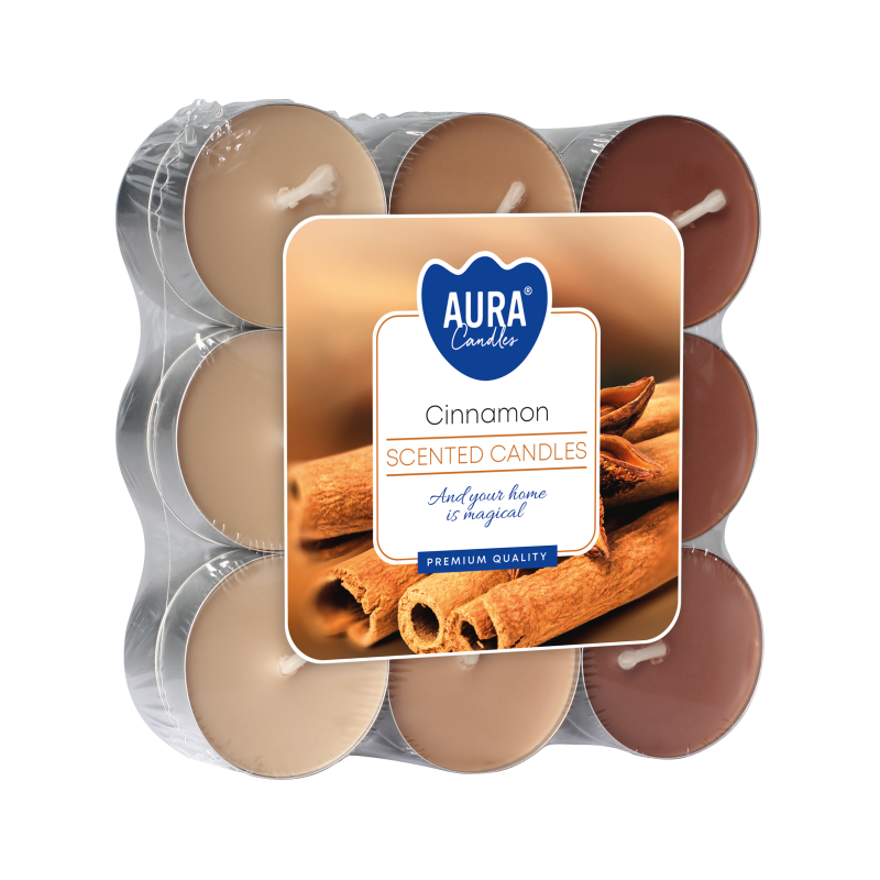 Tealighty Podgrzewacze o zapachu cynamonu, różnobarwnym wosku i czasie palenia do 4 godzin BISPOL. Pakowane po 18 szt jednostkowych w opakowaniu zbiorczym.