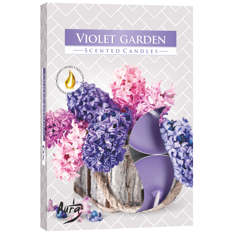 Tealighty Podgrzewacze o zapachu fioletowego ogrodu i czasie palenia do 4 godzin BISPOL. Pakowane po 6 szt jednostkowych w opakowaniu zbiorczym.
