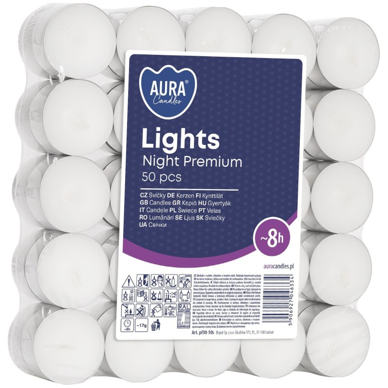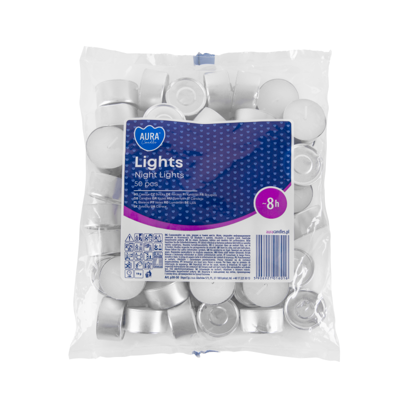 Tealighty Podgrzewacze bezzapachowe o czasie palenia do 8 godzin BISPOL. Pakowane po 50 szt jednostkowych w opakowaniu zbiorczym.