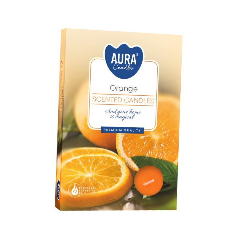 Tealighty Podgrzewacze o zapachu pomarańczy i czasie palenia do 4 godzin BISPOL. Pakowane po 6 szt jednostkowych w opakowaniu zbiorczym.