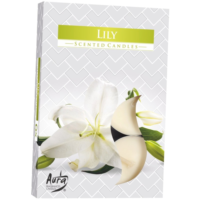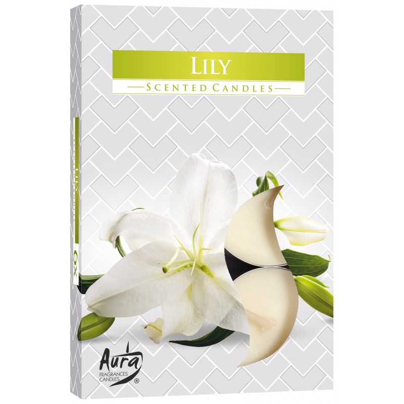 Tealighty Podgrzewacze o zapachu lilii i czasie palenia do 4 godzin BISPOL. Pakowane po 6 szt jednostkowych w opakowaniu zbiorczym.