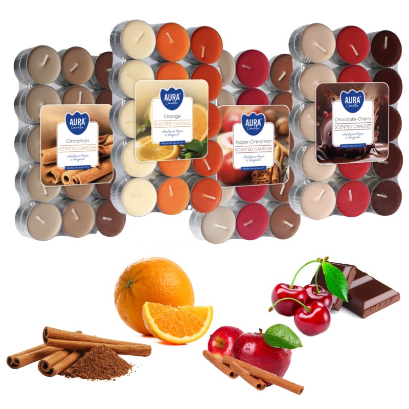Świeczki występują w kilkudziesięciu wariantach zapachowych.