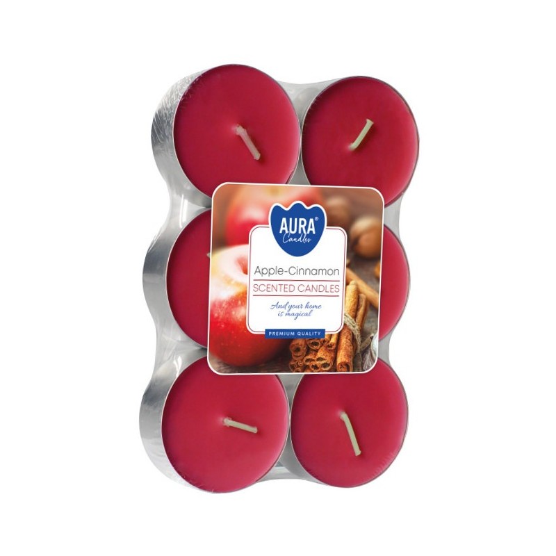 Tealighty Podgrzewacze o zapachu jabłka i cynamonu i czasie palenia do 8 godzin BISPOL. Pakowane po 6 szt jednostkowych w opakowaniu zbiorczym.