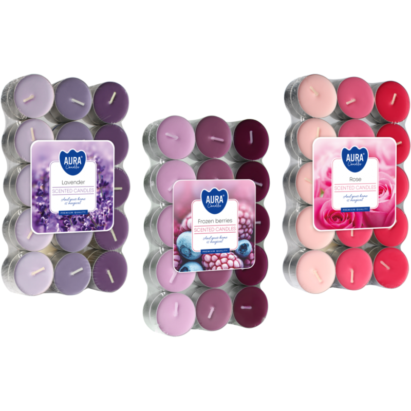 Świeczki występują w kilkudziesięciu wariantach zapachowych.