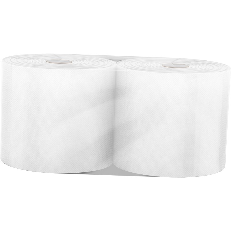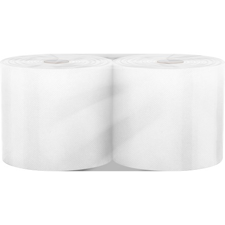Dwuwarstwowy, ręcznik papierowy celulozowy, czyściwo na roli o wysokości 25,5cm, średnicy 25cm, długości 310m, w kolorze białym.