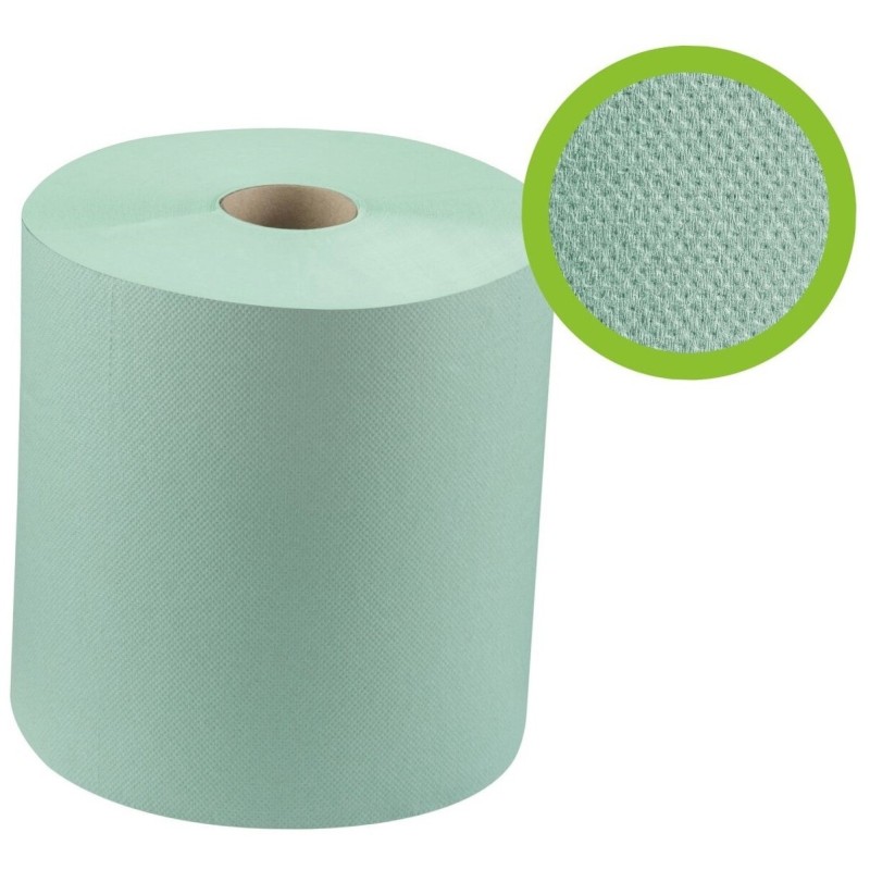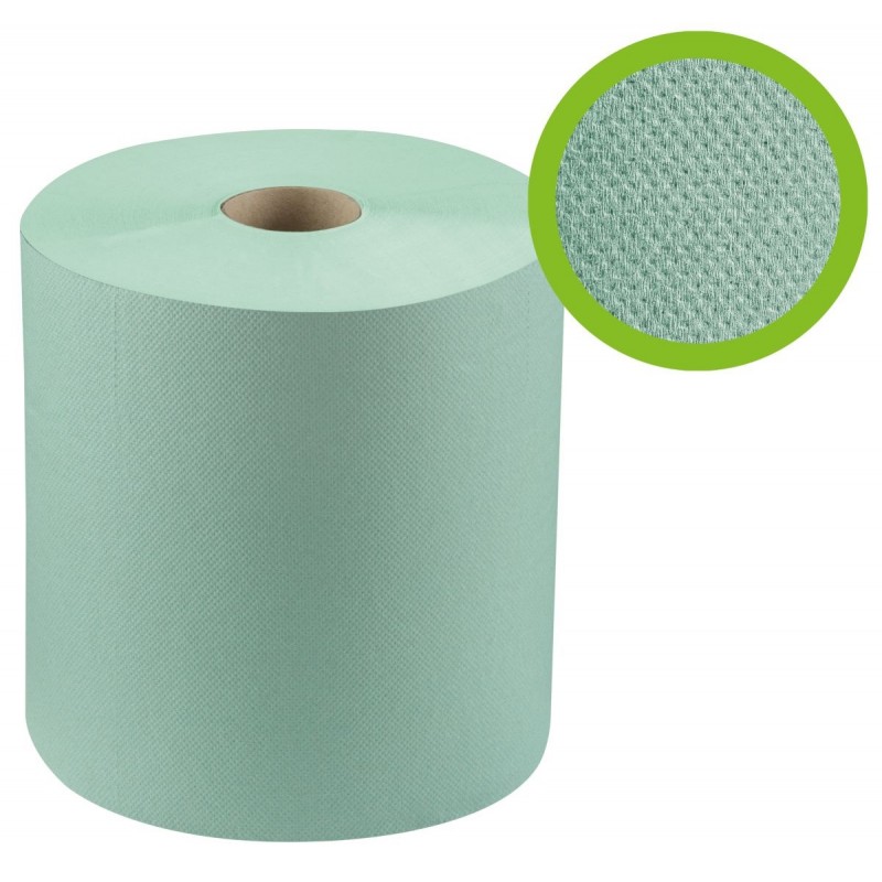 Jednowarstwowy, ręcznik papierowy makulaturowy, czyściwo na roli o wysokości 28cm w kolorze zielonym.