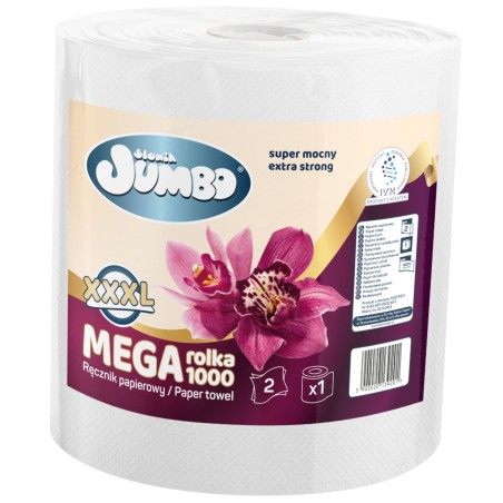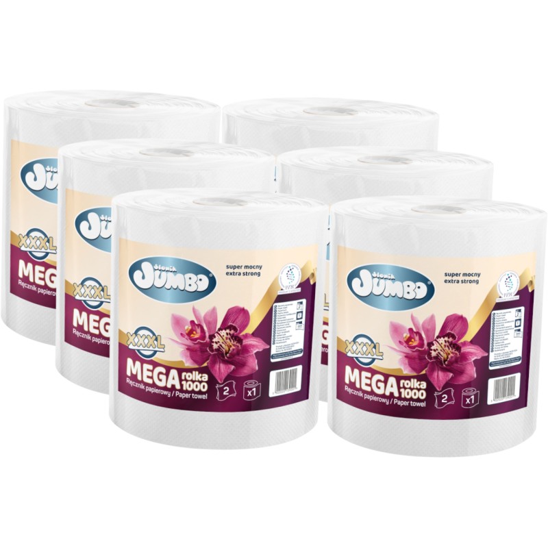 Ręcznik papierowy Słonik JUMBO XXXL 2W (550 listków) - Ekstra duża, dwuwarstwowa rolka papierowego ręcznika marki Słonik Jumbo, wykonana w 100 % z czystej celulozy. Produkt charakteryzuje się wyjątkową chłonnością, wytrzymałością i komfortem użycia – idealny do kuchni, łazienki, biura czy branży gastronomicznej