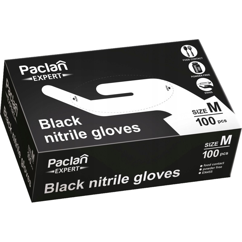 Rękawice nitrylowe PACLAN Expert "M" w kolorze czarnym.