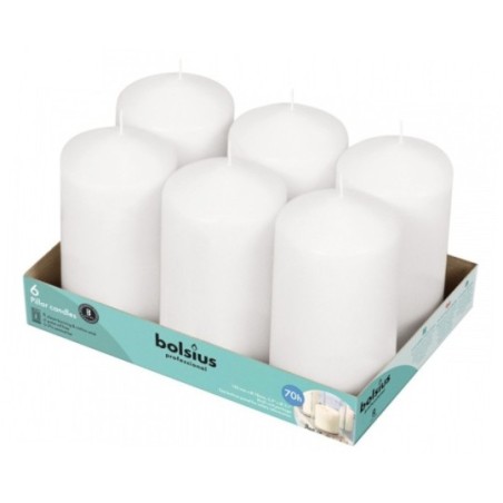 Pieńkowa świeca dekoracyjna w kolorze białym, bezzapachowa o wysokości 15cm, średnicy 7,8cm i czasie palenia do 65 godzin BOLSIUS.