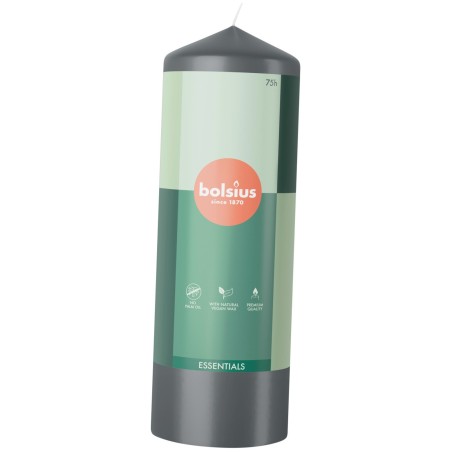 Dekoracyjna świeca pieńkowa z serii essentials w kształcie walca, kolorze burzowy szary, bezzapachowa o wysokości 20cm, średnicy 5,8cm i czasie palenia do 75 godzin BOLSIUS.