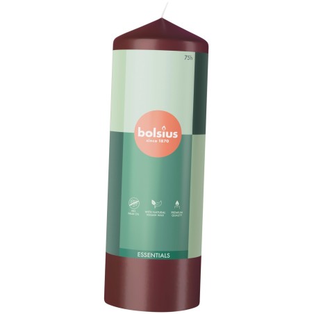 Dekoracyjna świeca pieńkowa z serii essentials w kształcie walca, kolorze aksamitna czerwień, bezzapachowa o wysokości 20cm, średnicy 5,8cm i czasie palenia do 75 godzin BOLSIUS.
