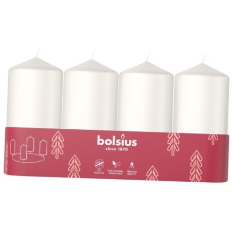 Dekoracyjna świeca pieńkowa z serii essentials w kształcie walca, kolorze białym, bezzapachowa o wysokości 10cm, średnicy 44mm i czasie palenia do 19 godzin BOLSIUS.