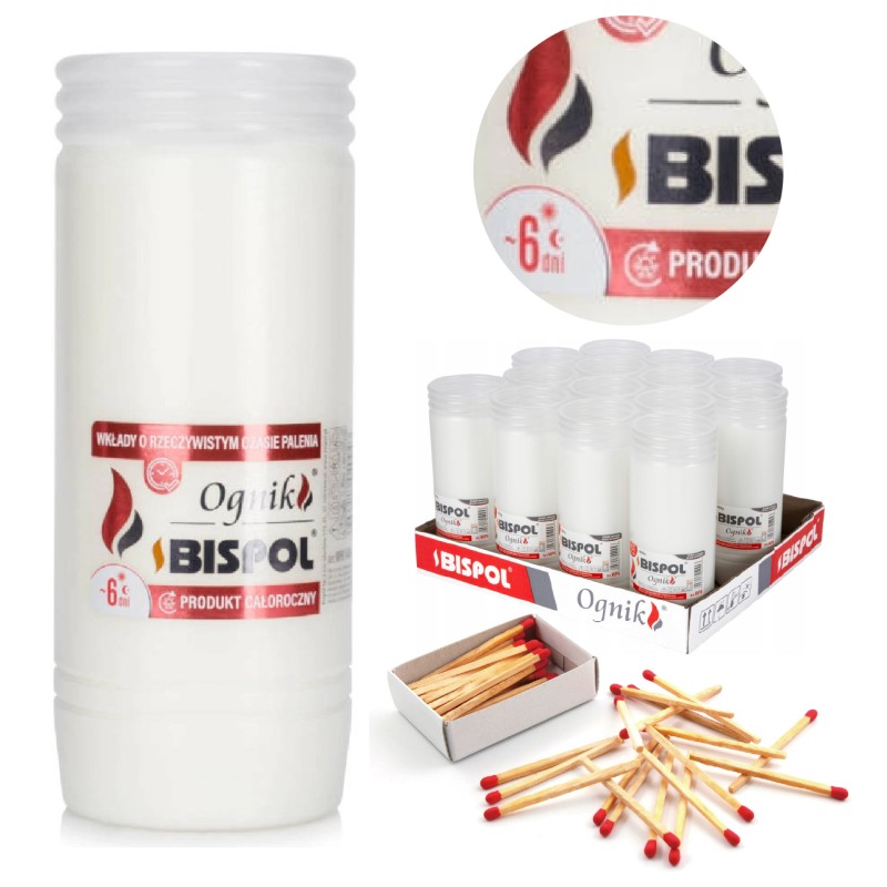 Wkłady do zniczy parafinowe zalewane o czasie palenia 6 dni. Wkłady najwyższej jakości, nie kopcą i wypalają się równomiernie do końca.