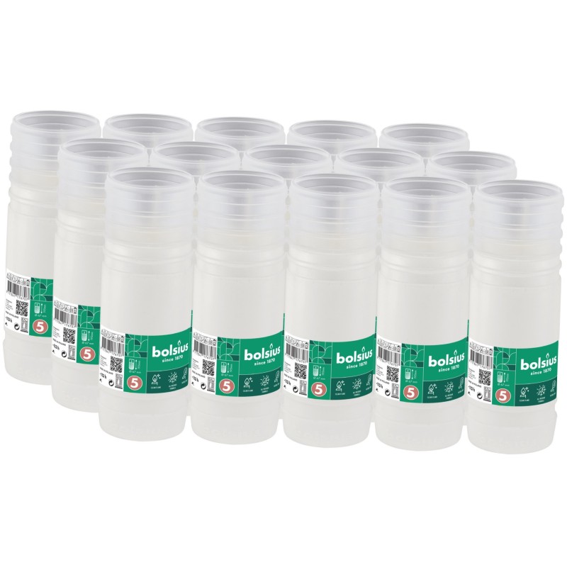 Wkłady do zniczy parafinowe zalewane w kolorze białym i czasie palenia do 113 godzin BOLSIUS. Wkłady najwyższej jakości, nie kopcą i wypalają się równomiernie do końca. Pakowane po 15 szt. jednostkowych w opakowaniu zbiorczym.