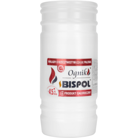 Wkład do zniczy parafinowy zalewane o czasie palenia 4,5 dnia. Wkład najwyższej jakości, nie kopci i wypala się równomiernie do końca.
