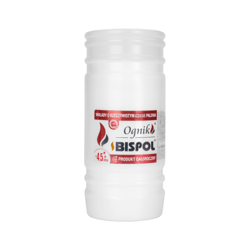 Wkład do zniczy parafinowy zalewane o czasie palenia 4,5 dnia. Wkład najwyższej jakości, nie kopci i wypala się równomiernie do końca.