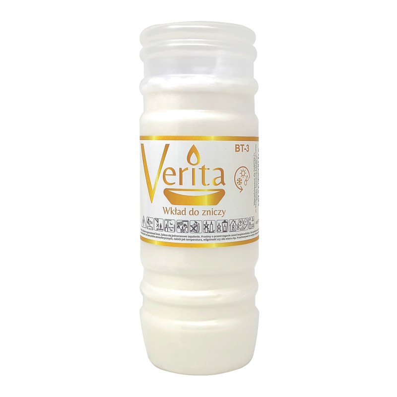 Dzięki swojej trwałości, wkład VERITA BT-3 jest doskonałym wyborem na długie dni pamięci i ważne rocznice, kiedy chcemy, aby znicz palił się nieprzerwanie.