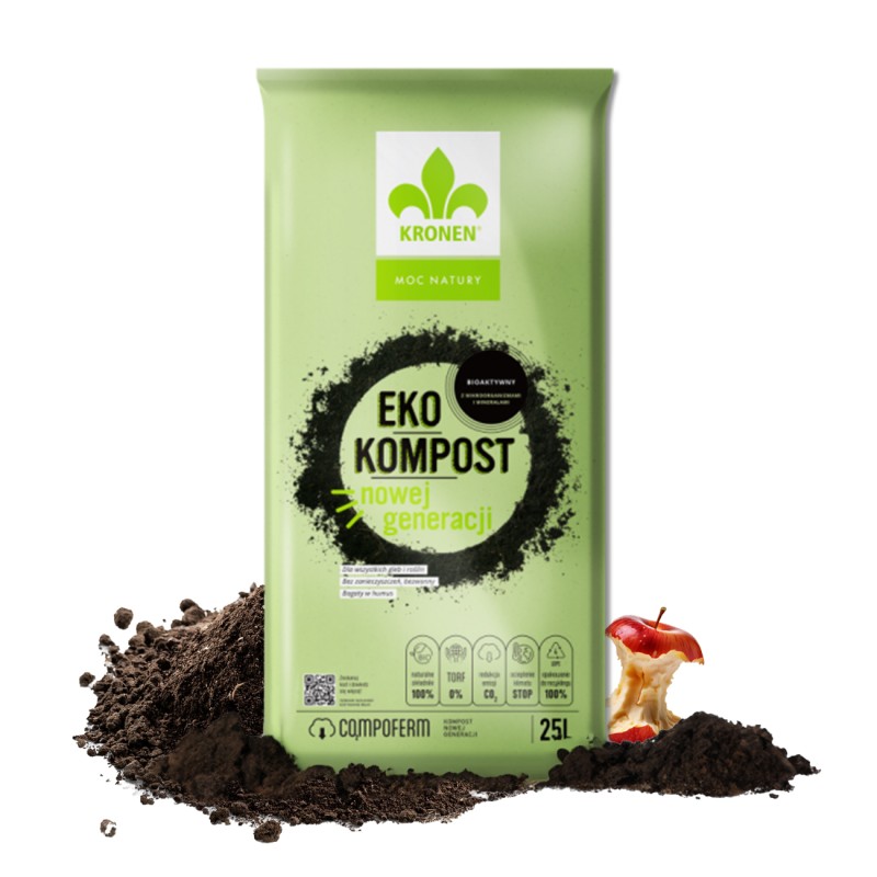 EKO-kompost KRONEN CO₂MPOFERM to bioaktywny kompost nowej generacji z mikroorganizmami i minerałami produkowany w procesie fermentacji beztlenowej zgodnie z patentem wybitnych producentów roślin.
