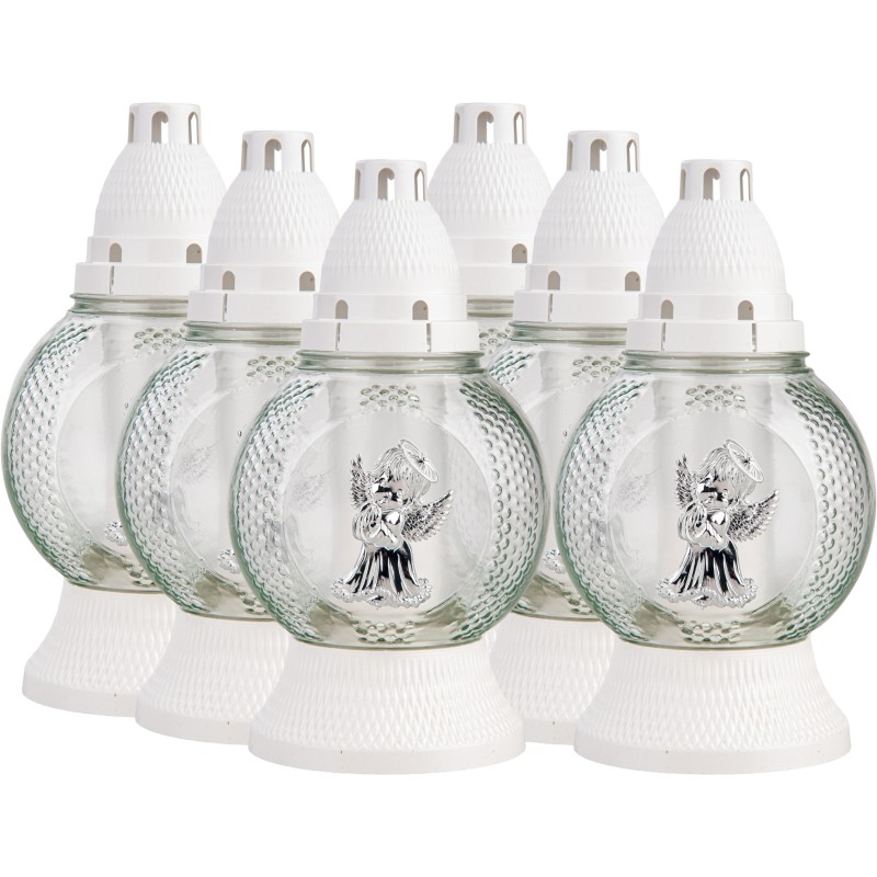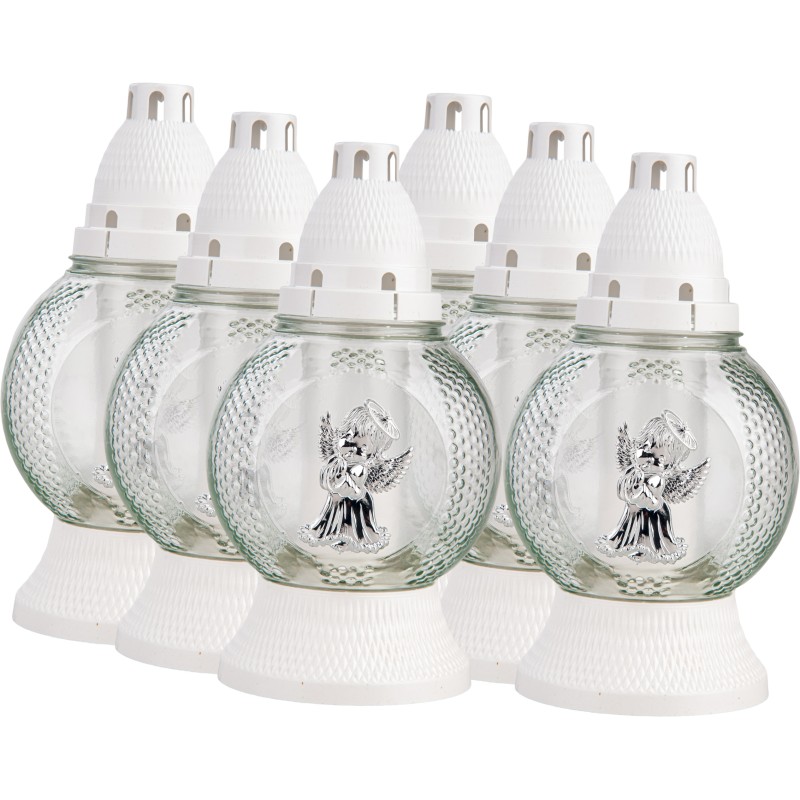 Znicze szklane w kolorze transparentnym. Zawierają wprasowane wkłady parafinowe o czasie palenia do 22 godzin. Znicze najwyższej jakości. Wkłady nie kopcą i wypalają się równomiernie do końca.