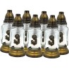 Znicze szklane w kolorze transparentnym. Zawierają wprasowane wkłady parafinowe o czasie palenia do 22 godzin. Znicze najwyższej jakości. Wkłady nie kopcą i wypalają się równomiernie do końca.