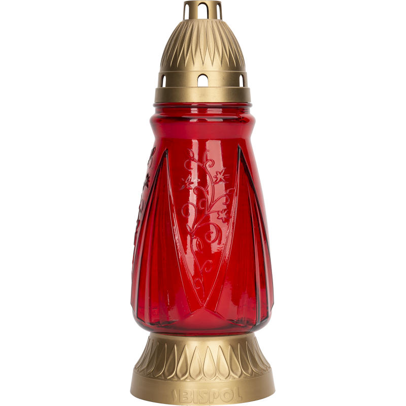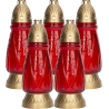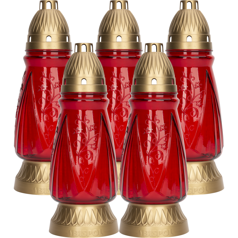 Znicze szklane w kolorze czerwonym BISPOL. Zawierają wprasowane wkłady parafinowe o czasie palenia do 48 godzin. Znicze najwyższej jakości. Wkłady nie kopcą i wypalają się równomiernie do końca.