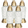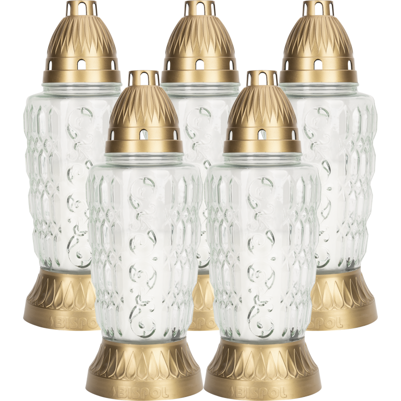 Znicze szklane w kolorze bezbarwnym BISPOL. Zawierają wprasowane wkłady parafinowe o czasie palenia do 48 godzin. Znicze najwyższej jakości. Wkłady nie kopcą i wypalają się równomiernie do końca.