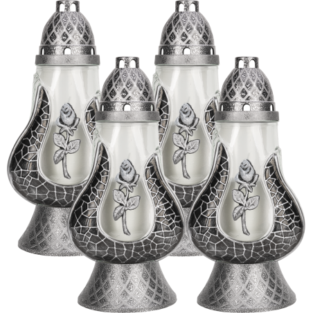 Znicz szklany BISPOL 4060 - 40H 4szt. CZARNY SREBRZONY