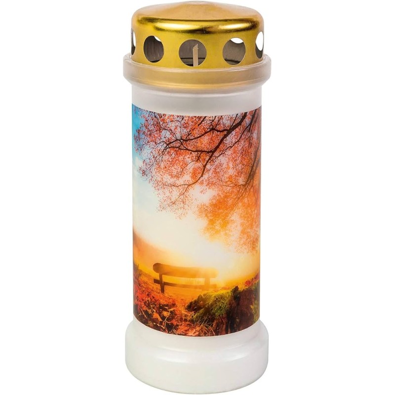 Znicz plastikowy z zalewanym wkładem parafinowym. Znicz w kolorze transparentnym o czasie palenia do 70 godzin. Znicz najwyższej jakości. Wkład nie kopci i wypala się równomiernie do końca.