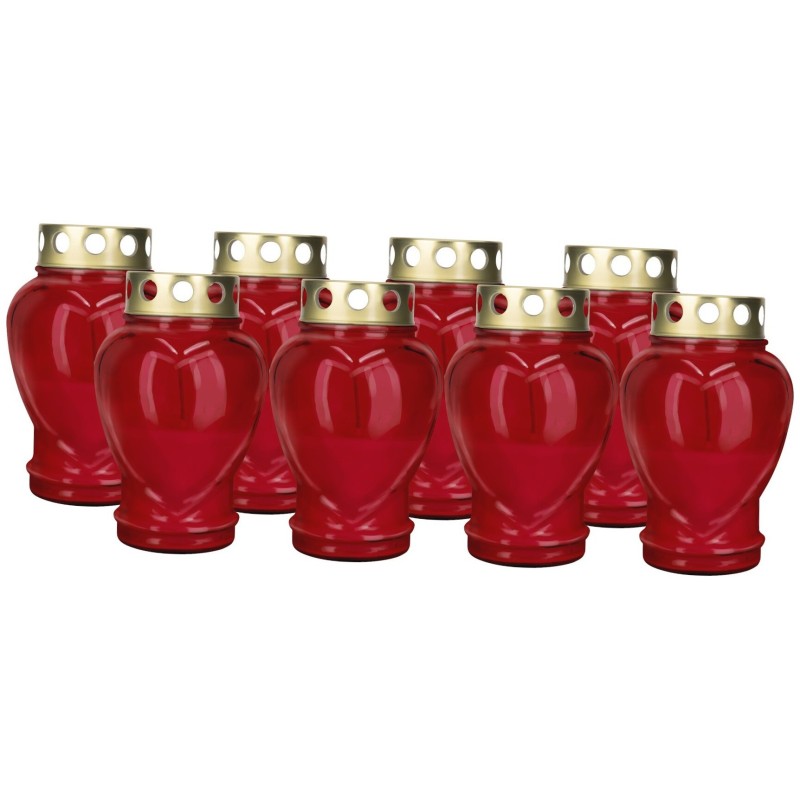 Znicze szklane w kolorze czerwonym o czasie palenia do 40 godzin BISPOL. Znicze najwyższej jakości. Wkłady nie kopcą i wypalają się równomiernie do końca.