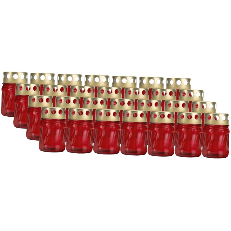 Znicze szklane w kolorze czerwonym BISPOL. Zawierają prasowane wkłady parafinowe o czasie palenia do 10 godzin. Znicze najwyższej jakości. Wkłady nie kopcą i wypalają się równomiernie do końca.