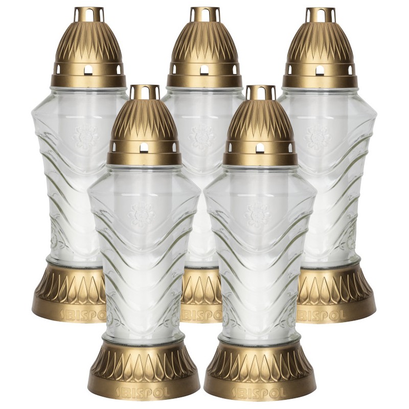 Znicze szklane w kolorze bezbarwnym BISPOL. Zawierają wprasowane wkłady parafinowe o czasie palenia do 48 godzin. Znicze najwyższej jakości. Wkłady nie kopcą i wypalają się równomiernie do końca.