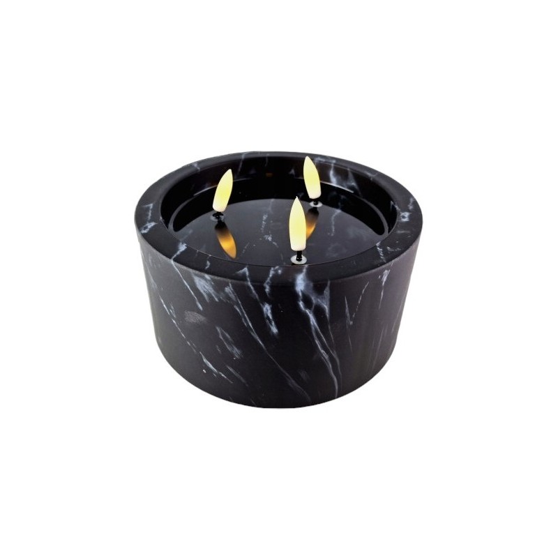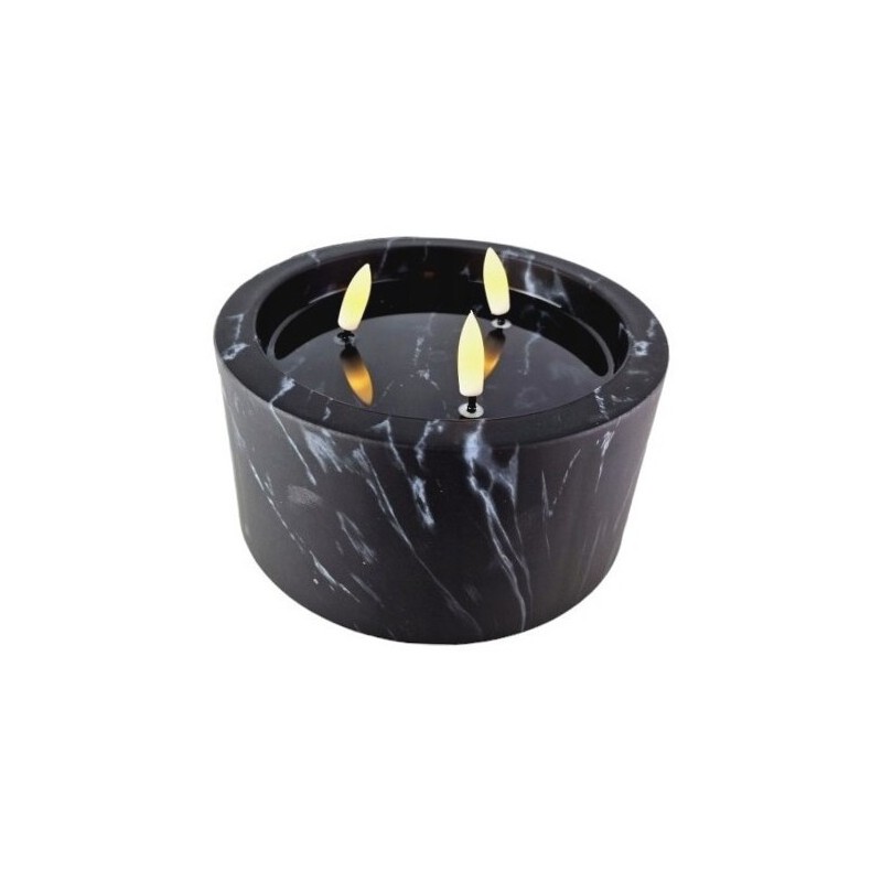 Świeca LED CORTINA w kolorze czarnym o wysokości 8cm, średnicy 15cm z imitacją efektu marmuru. Świeca najwyższej jakości, nie wydziela CO2.