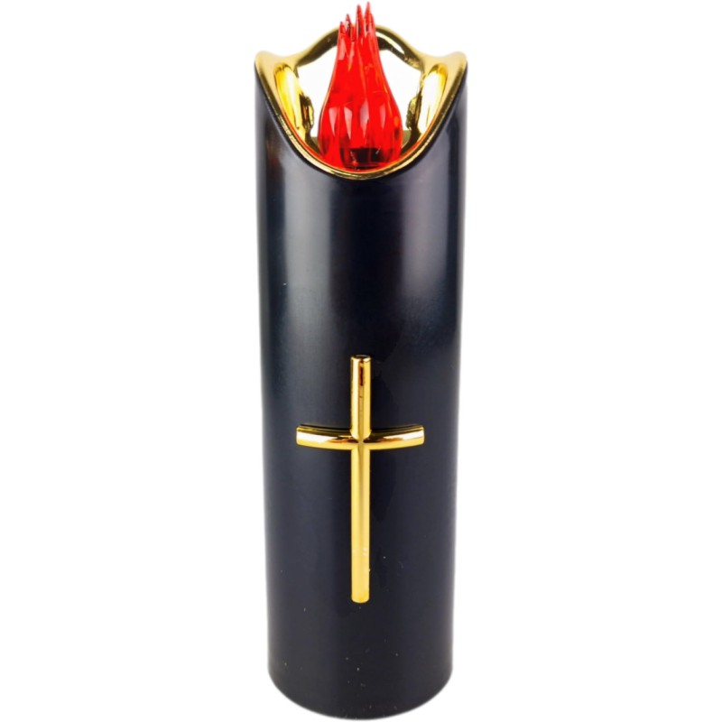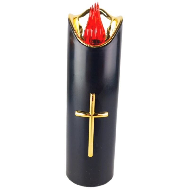 Znicz LED CORTINAw kolorze czarno-złotym o wysokości 17,5cm. Znicz najwyższej jakości, nie wydziela CO2.