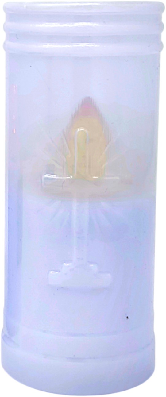 Wkład do znicza LED CORTINA w kolorze biało-pomarańczowym o wysokości 13.5cm i średnicy 5.8cm. Wkład najwyższej jakości, nie wydziela CO2.
