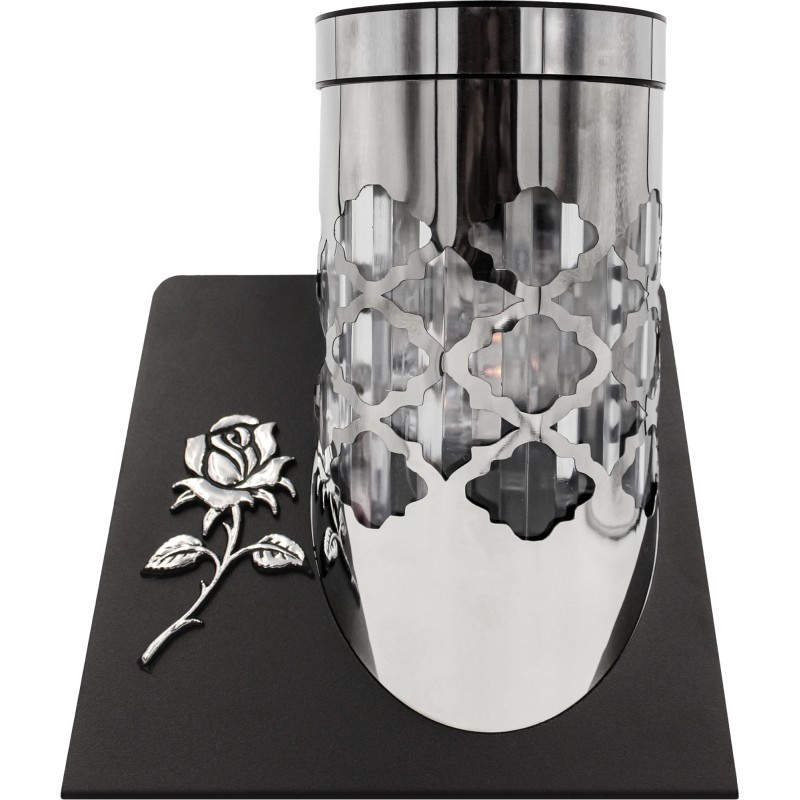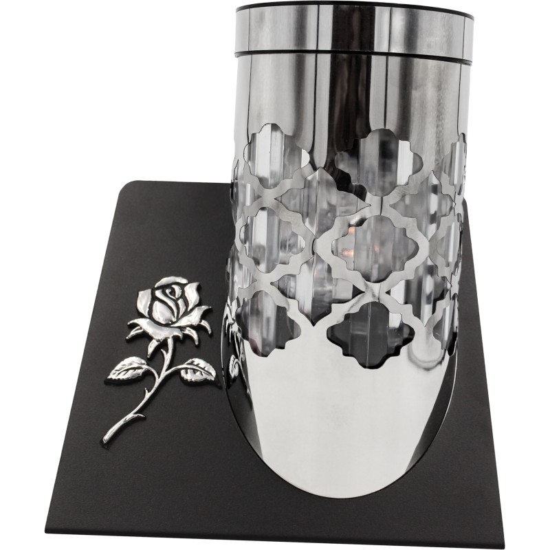 Znicz solarny LED z wbudowanym akumulatorem,w kolorze srebrnym, o wysokości 23cm. Znicz najwyższej jakości, nie wydziela CO2.