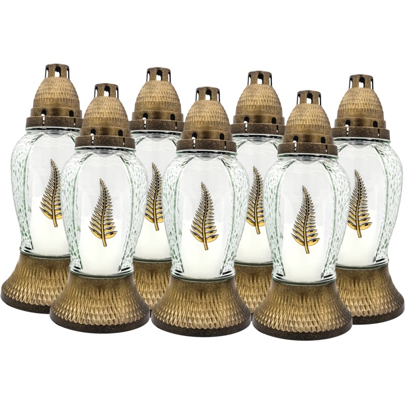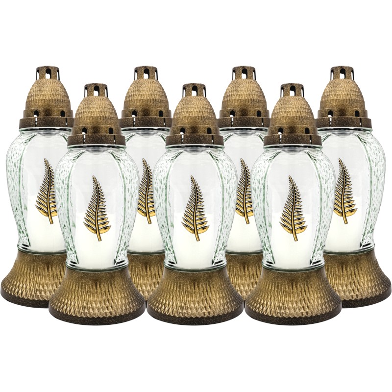 Znicze szklane w kolorze transparentnym. Zawierają wprasowane wkłady parafinowe o czasie palenia do 30 godzin. Znicze najwyższej jakości. Wkłady nie kopcą i wypalają się równomiernie do końca.
