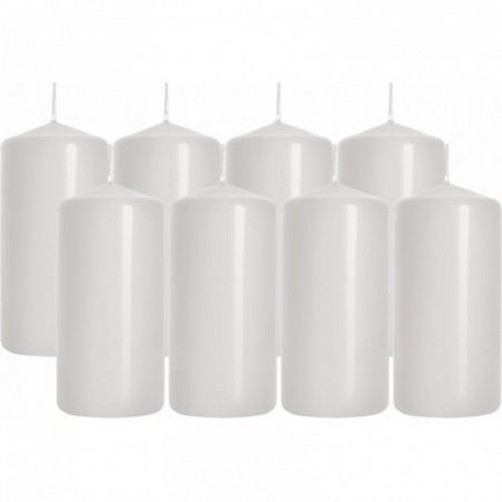 Biała świeca dekoracyjna w kształcie walca, bezzapachowa o wysokości 10cm, średnicy 4,8cm i czasie palenia do 20 godzin BISPOL. Pakowana po 8 szt. jednostkowych w opakowaniu zbiorczym.